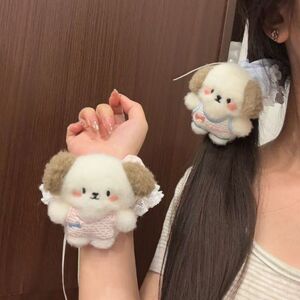 韩系ins风可爱小狗蕾丝花边蝴蝶结大肠发圈甜美发饰少女马尾头绳
