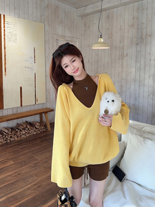 2025年秋季抽绳连帽深V领长袖针织女宽松外套+挂脖背心+抽绳短裤