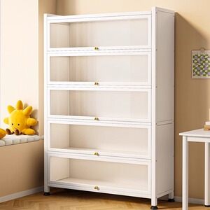 家用钢制书柜客厅带门防尘储物柜多层儿童书架落地展示柜收纳柜子