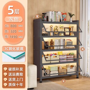 六层五门灰色【长80*宽32*高183cm】钢化玻璃