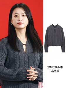 韩孝周同款灰色毛衣女2025早秋新款设计感小众宽松慵懒风针织上衣