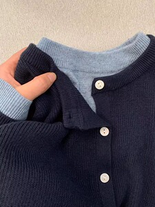 2025年新款高级感藏青色毛衣外套女秋冬慵懒宽松百搭假两件针织衫