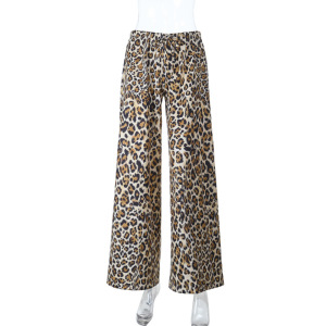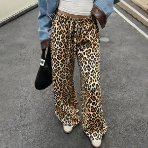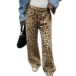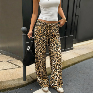 XM25018 欧美风跨境复古印花休闲搭配豹纹拖地阔腿裤高腰修身卫裤