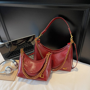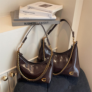 跨境高质感手提包亮面腋下包女2025秋冬新款链条单肩包时尚斜挎包