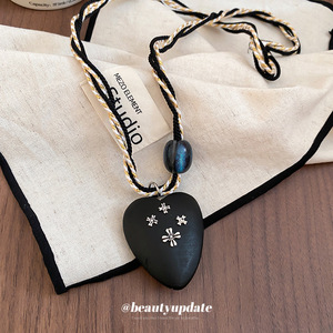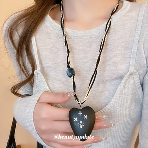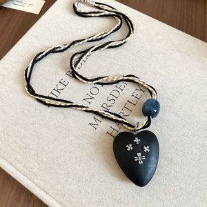 彩绳编织树脂木头爱心十字架吊坠项链暗黑风锁骨链设计感毛衣链女