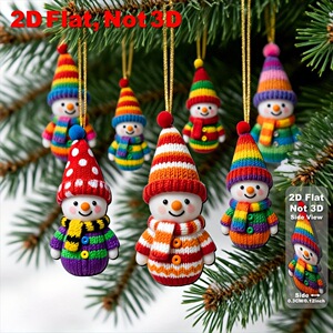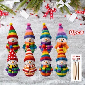 16件彩色雪人木质装饰品带有彩虹色调和绒球帽适用于圣诞节新年