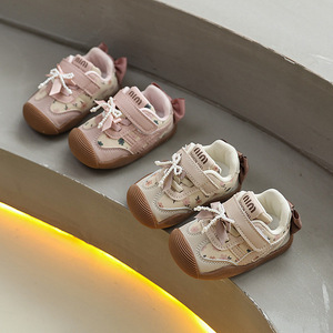女宝宝学步鞋软底秋季新款婴幼儿运动鞋防滑蝴蝶结韩版女童鞋小童