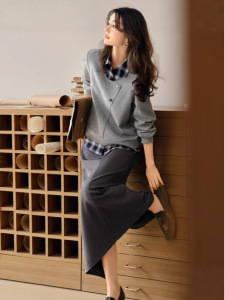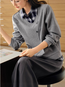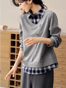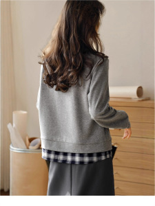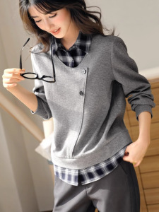宝藏卫衣女2025秋冬新款软糯撞色拼接格纹假两件空气层上衣女外穿