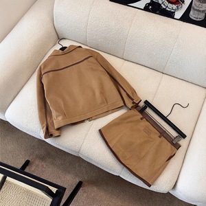 mm 跑量款美拉德棕麂皮绒套装夹克外套+短裙日常通勤出游百搭套装