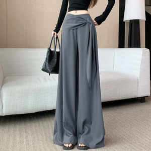 不规则假两件飘带阔腿裤女秋季设计感高腰显瘦百搭垂感直筒休闲裤
