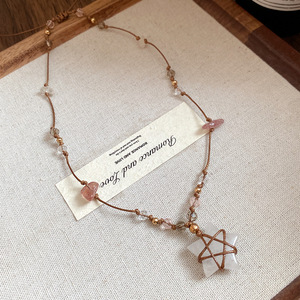 编织虎眼石星星吊坠项链复古民族风毛衣链小众设计感时尚项饰百搭