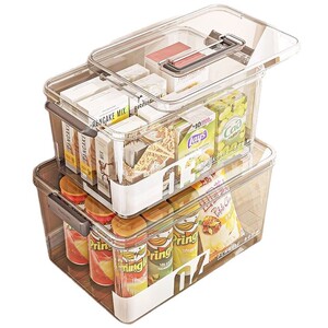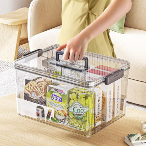 PET透明收纳盒高透手提大容量防尘防潮玩具书本零食杂物收纳整理