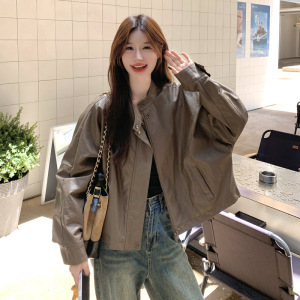 实拍美式复古立领短款皮衣外套2025秋款宽松百搭机车夹克皮衣
