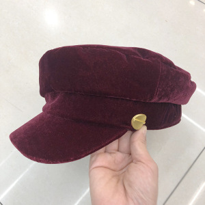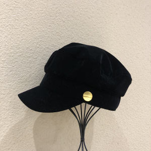 韩国丝绒保暖平顶画家帽子女短檐秋冬报童帽日系英伦黑色八角帽潮