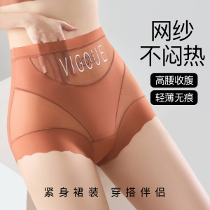 高腰网纱字母收腹内裤女2025新款薄款冰丝无痕透气塑身平角裤女款