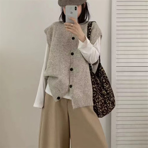 韩系圆领单排扣纯色针织马甲开衫女2025秋冬新款宽松百搭毛衣背心