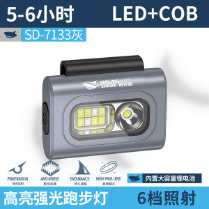 高亮跑步灯灰色款【帽夹设计+磁吸+红蓝闪】