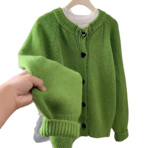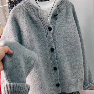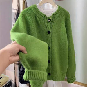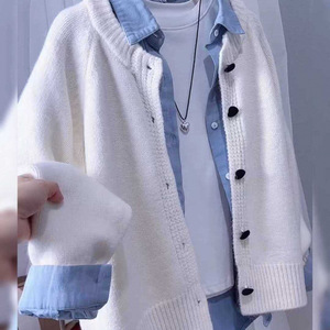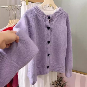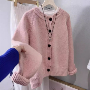 2025年秋冬新款温柔风纯色毛衣女洋气设计感爱心纽扣针织开衫上衣