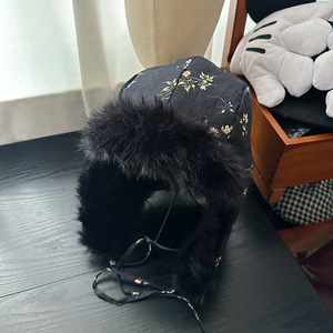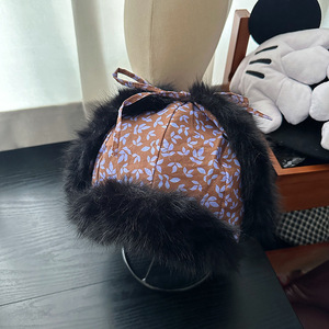 内里毛茸茸保暖碎花护耳帽子女冬新款韩版韩国减龄东北滑雪雷锋帽