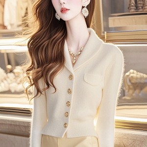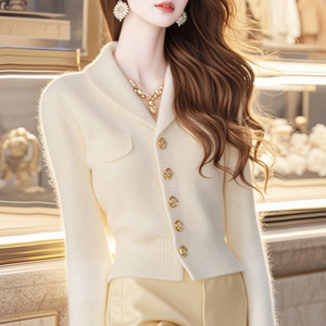 2025秋冬新款气质名媛高级感短款毛衣外套时尚杏色针织开衫女装
