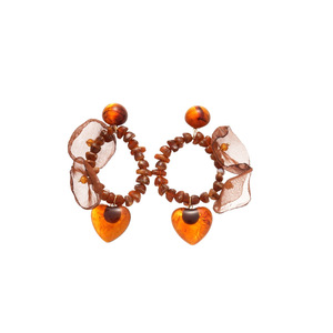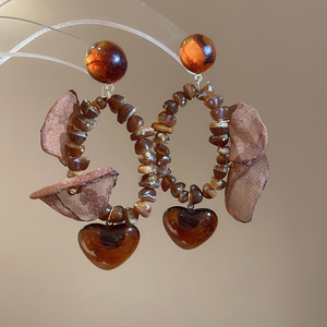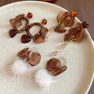 银针镶钻椭圆形网纱毛球吊坠耳环复古美拉德风耳钉小众设计感耳饰