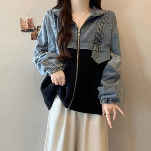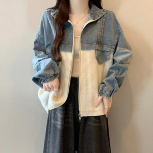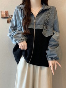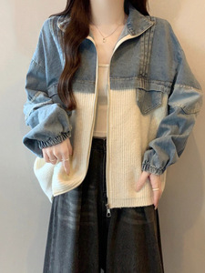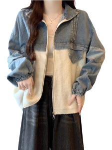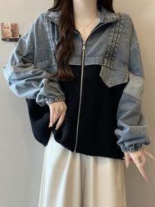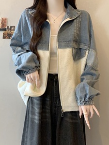 2025秋季新款女装韩系胖MM小众拼接牛仔外套显瘦针织开衫女A7545