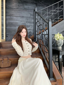 2025年秋季新款气质显瘦私享时刻条纹针织上衣长半裙休闲两件套