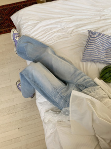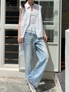 槿一 直筒牛仔裤女秋季2025新款今年流行浅蓝色显瘦高腰阔腿裤子