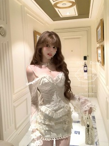 "珍珠泪光"法式复古修身显瘦蕾丝花纹荷叶边套装