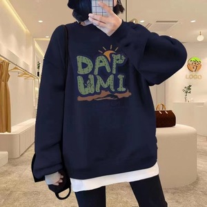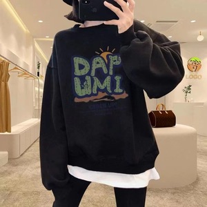 圆领卫衣灰色女宽松显瘦高级感韩版加绒加厚慵懒风小众长袖女上衣