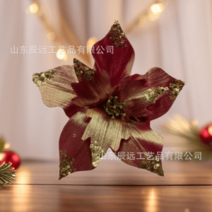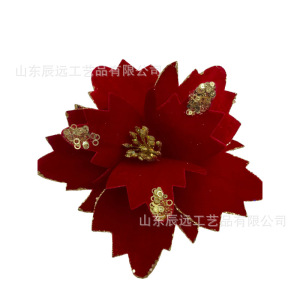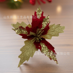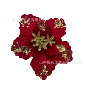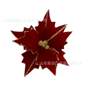 批发圣诞节仿真花圣诞花卉绒布亮片闪光浆果茎圣诞节装饰品家居花