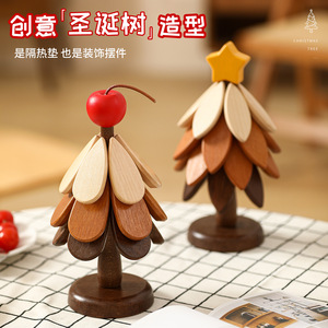 高级感圣诞树隔热垫餐桌摆件创意一棵树实木防烫锅垫折叠杯垫碗垫
