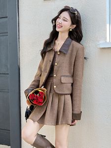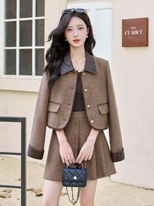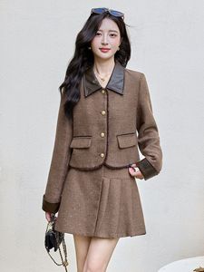 时尚套装2025秋季新款小香风拼接气质外套+精致短裙两件套YJ8638