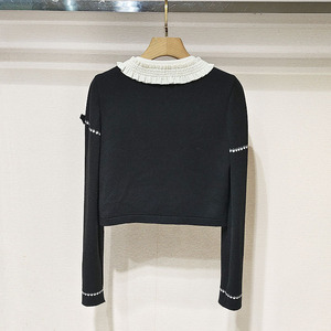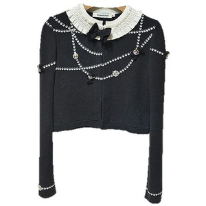 1件起批2025冬女装 珍珠提花荷叶领蝴蝶结长袖针织开衫S250808