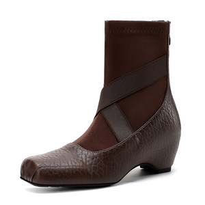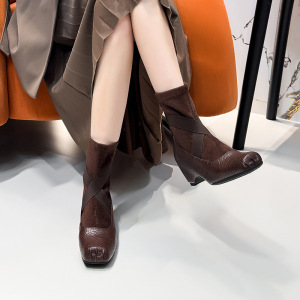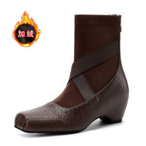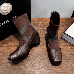 内增高5CM女百搭气质复古不过膝高筒靴秋冬季显瘦法式气质短靴