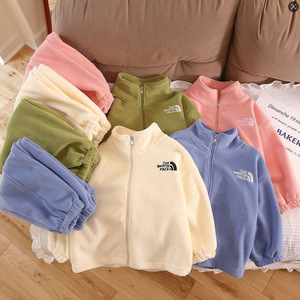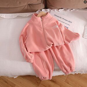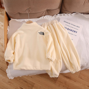 2025儿童秋冬加绒加厚保暖套装韩版男女童双面奥利绒俩件套中大童