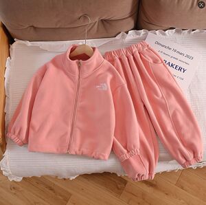 流肩奥粒绒拉链套装粉色