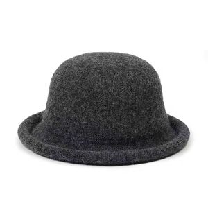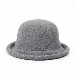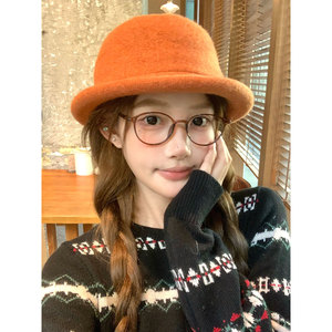 韩版冬季卷边小礼帽女复古赫本风圆顶渔夫帽显脸小羊毛呢千金帽子
