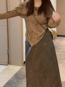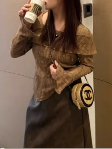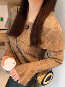 大码荷叶边拼接长袖T恤女秋季胖mm设计感小众修身显瘦打底衫上衣