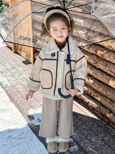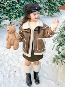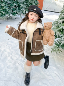 女童秋冬季皮毛一体外套女宝宝仿皮草冬装新款女宝洋气皮衣机车服