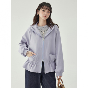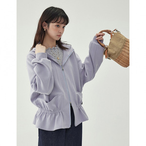 紫色卫衣女连帽外套2025秋季新款长袖拉链开衫橡筋收腰上衣设计感