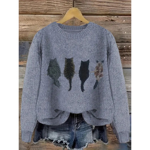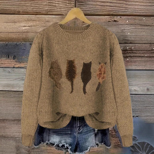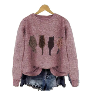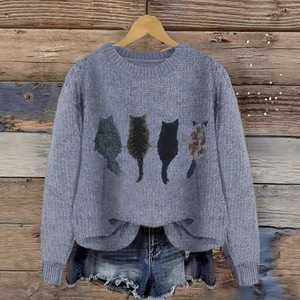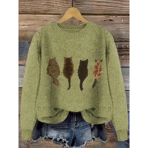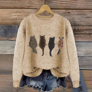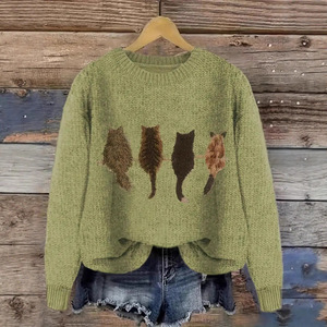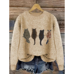 2025欧美跨境外贸女士仿毛衣3D数码系列印花圆领毛衣厂家热销