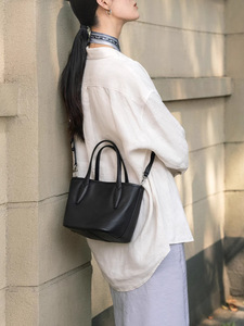 裘真植鞣牛皮漫漫菜篮子包手提斜挎大容量高级感通勤真皮水桶包女
