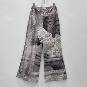 美式高街辣妹设计感可拆卸多穿牛仔裤子女重工抽象数码印花拖地裤