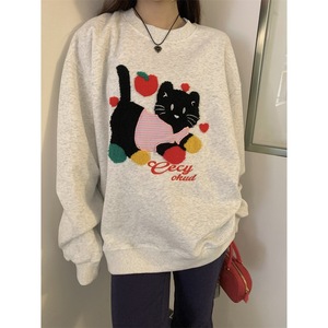 实拍~韩系可爱猫咪毛巾绣宽松休闲卫衣女秋季圆领套头外套潮89520