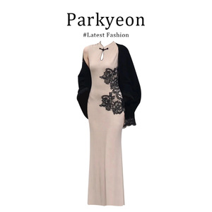 新中式国风秋季新款无袖旗袍连衣裙女蕾丝拼接披肩套装