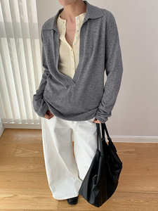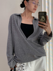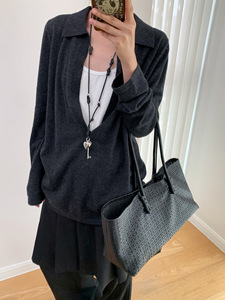 桃乐丝 高品质韩国休闲穿搭细羊毛叠穿大V领慵懒风百搭长袖针织衫