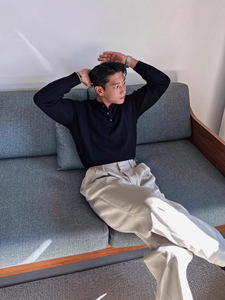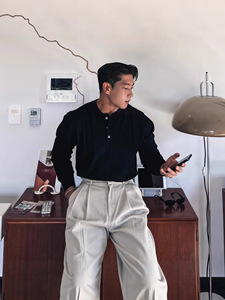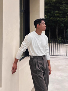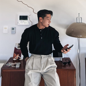 亨利领针织长袖男士早秋韩版坑条纹理感T恤休闲通勤轻熟风打底衫