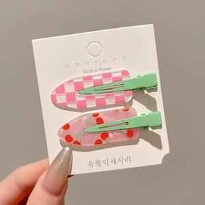2#彩椭圆碎发夹-粉色一对约5.2cm