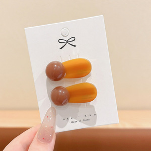 5#彩椭圆碎发夹-黄色一对约5.2cm